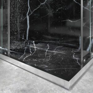 Les profilés en aluminium anodisé argent brillant sont des plus sublimes dans cette version, avec des lignes épurées et droites qui lui confèrent une élégance indéniable. Belle et robuste, la paroi de douche moderne FRAME est un choix parfait si vous cherchez à allier fonctionnalité et esthétique. Cela rendra votre salle de bain plus conforme aux tendances actuelles en matière de design d’intérieur de salle de bain et en même temps, cela améliorera le style de décoration. Si vous avez des toilettes ou une mini salle de bain, ce modèle sera un bon atout pour en profiter grâce à ses cristaux transparents donnant plus de lumière à votre salle de bain.