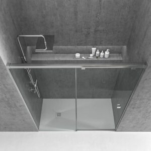 - Sa composition de 1 cabine de douche fixe et 1 coulissante, avec doubles roues cachées et système de freinage automatique, réalise un véritable plaisir de technologie à chaque ouverture et fermeture.