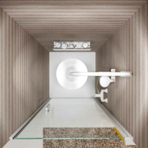 - Cabine de douche avec porte battante à 180 degrés, intérieur et extérieur.