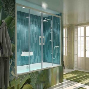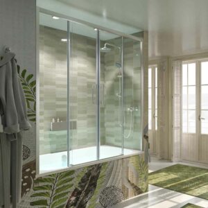 Façade de baignoire avec deux fixes et deux coulissantes.