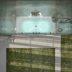 Écran sans profil inférieur mais avec joint en aluminium chromé brillant pour assurer l’étanchéité.