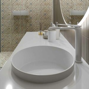 - Lavabos : Fabriqué en SOLID SURFACE avec vasque carrée ou ronde. Finitions en couleurs au choix.