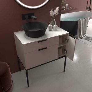 - Avec jambes : choisissez un meuble de salle de bain avec pieds si vous souhaitez un design attrayant et une stabilité totale pour votre meuble sous lavabo.