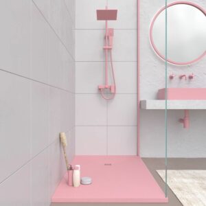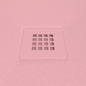 Receveur de douche CLOE en résine rose pâle et autres couleurs exclusives avec une texture ardoise antibactérienne et antidérapante. Grille thermolaquée