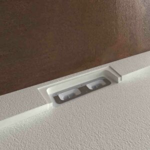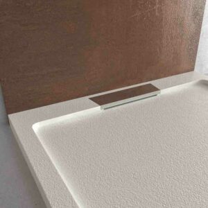 Le receveur de douche réalisé avec les résines modèles de dernière génération STYLE de couleur Blanc, il présente un design moderne, avant-gardiste et unique. C’est la fusion entre une plaque lisse et une avec cadre. Il est fini en GEL COAT antibactérien et en texture ardoise. Peut être coupé en taille. La grille cache une grande vanne de débit.