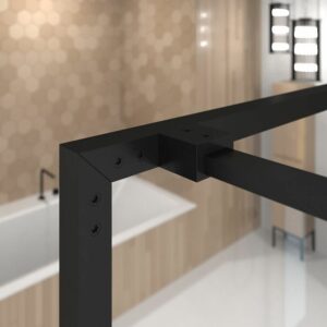 • Paroi de douche à panneau fixe encadré en aluminium hauteur 260 cm au plafond. Verre de sécurité trempé de 4 mm avec traitement anti-calcaire inclus. Bras de sécurité jusqu’à 100 cm.