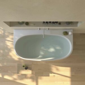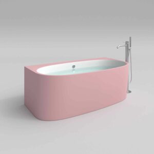 - L’avantage de cette baignoire en solid surface COUVE est qu’à l’extérieur elle est ovale, élégante et rétro, mais la face arrière est droite, elle touche donc complètement le mur.