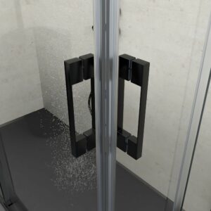 - Les profilés de cet écran de salle de bain sont en aluminium anodisé noir mat, qui, avec les lignes raffinées et sa poignée assortie, donne une sensation d’espace et de lumière à laquelle il est impossible de résister.