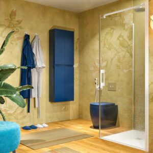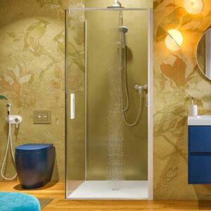 • Paroi de douche avant avec 1 porte battante et un côté fixe.