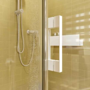 Fermez votre receveur de douche d’angle carré ou rectangulaire avec une paroi de douche moderne, étanche et visuellement légère. Si vous avez aussi une salle de bain claire, les plus confortables sont les parois de douche rabattables. La paroi de douche OPEN à deux vantaux, porte battante et côté fixe, est idéale pour sceller les receveurs de douche carrés ou rectangulaires à moindre coût.