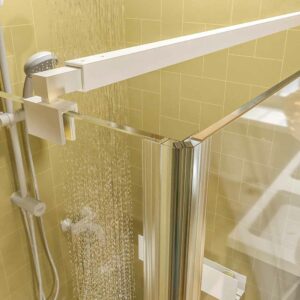 Cabine de douche carrée OPEN 1 fixe – 1 porte battante Fabrication sur mesure. BLANC MAT