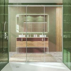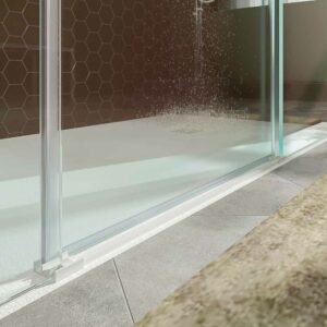 Avec deux fronts latéraux fixes ces obstacles sont épargnés. En outre, en n’ayant pas de profil inférieur et de roulements supérieurs, cette cabine de douche est plus léger et plus minimaliste.