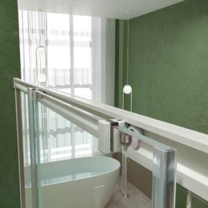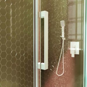 - Particulièrement recommandé pour les receveurs de douche dont la façade est supérieure à 120 cm, de sorte qu’il laisse un espace d’entrée minimum de 50 cm.