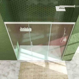 La paroi de douche Basic, son format en trois parties, deux portes fixes et une porte coulissante, est très utile dans certains cas. Qui? Lorsque vous avez une salle de bain bondée ou des éléments très proches de la douche. Dans ce cas, si les éléments ou toilettes sont sur les côtés du plateau, un accès frontal sera pratique.