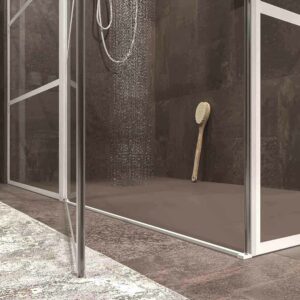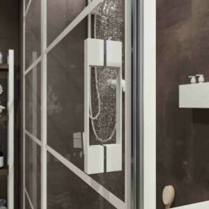 Peut-être, même si vous avez des toilettes ou des meubles près du receveur de douche, vous pouvez vous permettre d’installer une paroi de douche à ouverture battante. Si votre receveur est situé dans un angle, qu’il soit plus ou moins grand, une composition comme celle-ci de la paroi de douche OPEN peut être utile. Il comporte deux parties vitrées fixes et une porte mobile qui s’ouvre vers l’extérieur. Si les obstacles sont sur les côtés et ne réduisent pas l’ouverture de la porte, il faut savoir qu’un paravent est le plus pratique et le plus confortable. Il n’y a pas de profil inférieur pouvant provoquer des trébuchements et s’il est accompagné d’une plaque plate, il sera super accessible (particulièrement favorable lorsque les utilisateurs sont âgés ou à mobilité réduite).