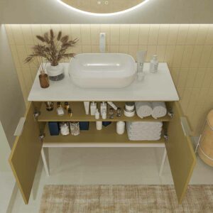 - Avec jambes : choisissez un meuble de salle de bain avec pieds si vous souhaitez un design attrayant et une stabilité totale pour votre meuble sous lavabo.