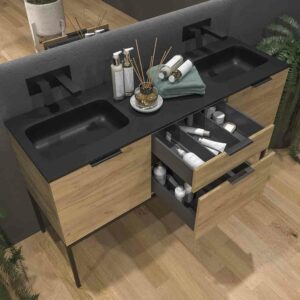 - Modules complémentaires: Plateau de séparation avec accessoires facilitant l’ordre et le confort dans la salle de bain