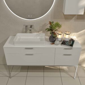 - Avec jambes : choisissez un meuble de salle de bain avec pieds si vous souhaitez un design attrayant et une stabilité totale pour votre meuble sous lavabo.