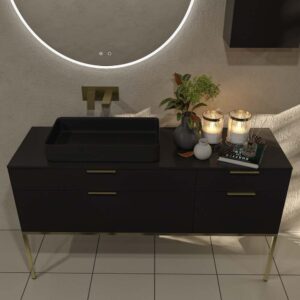 - Avec jambes : choisissez un meuble de salle de bain avec pieds si vous souhaitez un design attrayant et une stabilité totale pour votre meuble sous lavabo.