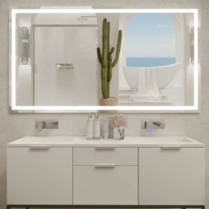 È realizzato con un vetro liscio in una struttura con cornice in ABS nella parte posteriore. La potenza varia in base alle dimensioni dello specchio. Hai la possibilità di sceglierlo in tre tipi di luci; Luce fredda (6000ºK), Luce neutra (4500ºK), Luce calda (3200ºK).