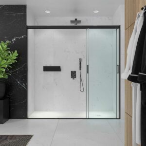 Comment est ta salle de bain ? Est-elle large ou y a-t-il des obstacles qui rendent difficile l’accès à la douche ? Si l’espace est quelque peu réduit et qu’il y a des toilettes ou des meubles près de l’ouverture du paravent, le système de trois portes coulissantes avec ouverture des deux côtés est fortement recommandé pour votre cas. Lorsque les feuilles sont ouvertes, elles se cachent l’une derrière l’autre, laissant un espace d’entrée des deux tiers du trou total.