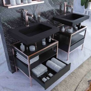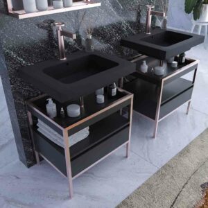Vous pouvez acheter cet ensemble de salle de bain en deux finitions mates différentes. Ce sont des couleurs qui se marient très bien avec la plupart des décorations modernes et surtout avec les salles de bain avec une touche de design industriel.