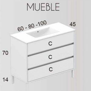 Vous pouvez également modifier la largeur des mesures, qui peut être de 60 , 80 ou cm x 45 cm de profondeur et 84 cm de hauteur.
