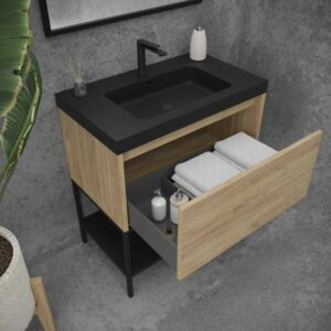 Installation: C’est un Meubles de salle de bains qui est entièrement expédié monté, vous n’aurez qu’à l’installer dans la salle de bain que vous souhaitez au sol puisqu’elle est sur pieds. Un meuble de salle de bain avec pieds idéal pour votre nouveau séjour.