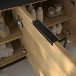 Meubles de salle de bain ELLA style minimaliste par Varobath Il vous offre un style de décoration très élégant pour votre salle de bain. Avec une variété de tailles et une finition en chêne clair, ce modèle vous permet de décorer votre salle de bain, de profiter de l’espace et d’avoir un endroit pour ranger vos produits d’hygiène.
