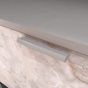 Il est fabriqué en MDF, un matériau très résistant et durable pour que le meuble ait une longue durée de vie. La peinture cette base d’ions argent est projetée sur le module antibactérien ce qui le rend plus résistant. La façade imprimée en 3D effet marbre en fait un meuble de salle de bain design unique sur le marché national et international.