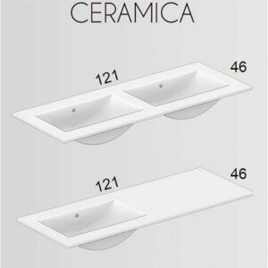 - Ce meuble reflète un meuble de salle de bain aristocratique et luxueux avec pieds, il mesure 120 cm de large, 84 cm de haut et 45 cm de profondeur.