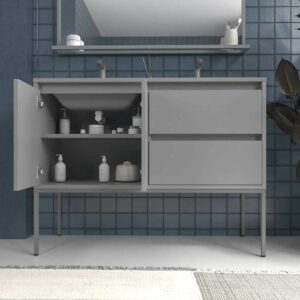 - Fácil de instalar: tout est livré déjà assemblé. Étant un meuble avec pieds, vous pouvez l’avoir bien fixé au mur, en profitant de suffisamment d’espace pour nettoyer en dessous et d’une consistance parfaite.