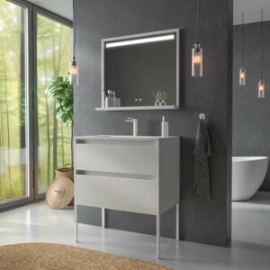 - Fácil de instalar: tout est déjà assemblé. Étant un meuble suspendu, vous pouvez l’avoir bien fixé au mur, en profitant de suffisamment d’espace pour nettoyer en dessous et d’une consistance parfaite.