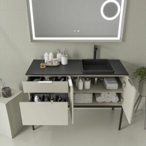- Modules complémentaires: Plateau de séparation avec accessoires facilitant l’ordre et le confort dans la salle de bain