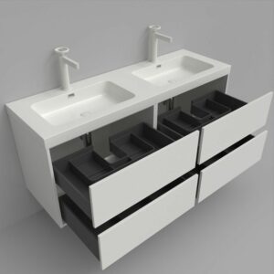 Soyez le premier à laisser votre avis sur “Meuble de salle de bain suspendu 120 cm 4 tiroirs CARMEN avec double vasque 2 vasques résine finition BLEU COBALT”