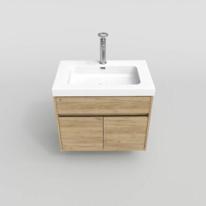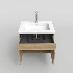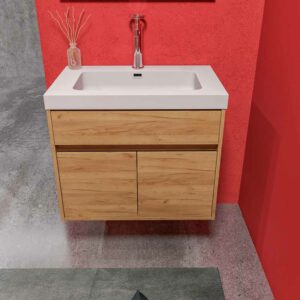 - Fácil de instalar: tout est déjà assemblé. Étant un meuble suspendu, vous pouvez l’avoir bien fixé au mur, en profitant de suffisamment d’espace pour nettoyer en dessous et d’une consistance parfaite.