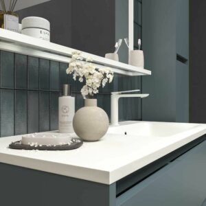 - Ajoutez vos meubles auxiliaires, colonne de salle de bain, luminaires ou miroir pour créer un environnement harmonieux et uniforme.