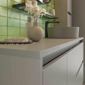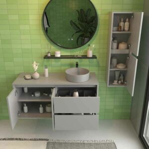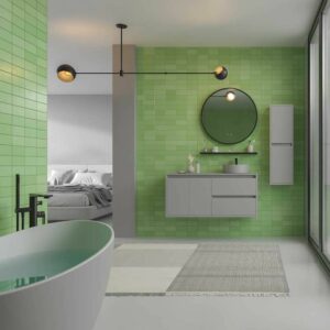 - Ajoutez vos meubles auxiliaires, colonne de salle de bain, luminaires ou miroir pour créer un environnement harmonieux et uniforme.