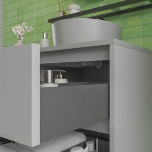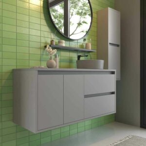 - Fácil de instalar: tout est déjà assemblé. Étant un meuble suspendu, vous pouvez l’avoir bien fixé au mur, en profitant de suffisamment d’espace pour nettoyer en dessous et d’une consistance parfaite.