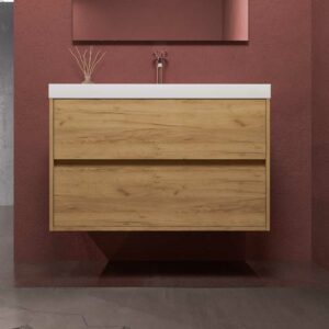 - Fácil de instalar: tout est déjà assemblé. Étant un meuble suspendu, vous pouvez l’avoir bien fixé au mur, en profitant de suffisamment d’espace pour nettoyer en dessous et d’une consistance parfaite.