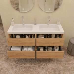 - Largeur du produit : Meuble 120 cm + Vasque Hélios résine 2 vasques