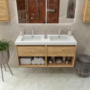 - Largeur du produit : Meuble 120 cm + Vasque Hélios résine 2 vasques