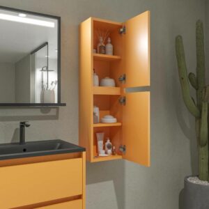 - Fácil de instalar: tout est déjà assemblé. Étant un meuble suspendu, vous pouvez l’avoir bien fixé au mur, en profitant de suffisamment d’espace pour nettoyer en dessous et d’une consistance parfaite.