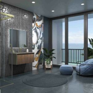 Il est en chêne teinté naturel , un matériau très résistant et durable pour que le meuble ait une longue durée de vie. La peinture cette base d’ions argent est projetée sur le module antibactérien ce qui le rend plus résistant. La façade à lattes en fait un meuble de salle de bain design unique sur le marché national et international.