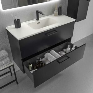 Soyez le premier à laisser votre avis sur “Meuble de salle de bain suspendu NEXO 2 tiroirs profondeur réduite 40 cm laqué mat avec vasque en porcelaine NOIR”
