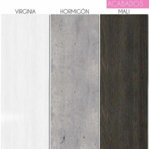 Une fois que vous avez ce clair, vous pouvez choisir la couleur du meuble : CAMBRI BRITAN WHITE VIRGINIA CONCRETE MALI. Lequel d’entre eux vous appelle le plus ?
