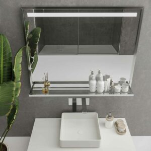 Ce magnifique miroir de salle de bain a un éclairage LED, vous devrez donc réfléchir à la façon dont vous allez éclairer la vanité ou le lavabo.