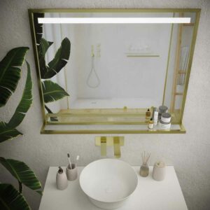 Le miroir de salle de bain avec cadre EVO en différentes finitions a en différentes mesures et un cadre en aluminium de différentes couleurs. Vous pouvez choisir le noir, l’or, l’or rose, le cuivre, le blanc. Les options sont multiples !