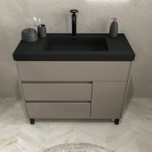 - C’est un meuble de salle de bain avec pieds, une option idéale pour ceux qui recherchent un meuble stable, facile à installer et avec des pieds intégrés pour une grande résistance.