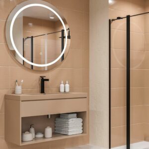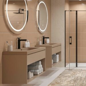 - Ajoutez vos meubles auxiliaires, colonne de salle de bain, luminaires ou miroir pour créer un environnement harmonieux et uniforme.